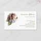Showcase your sweet creations with our modern and minimal bakery business card, thoughtfully designed to highlight your work in a clean, elegant layout. The front of the card features space for three custom photos — perfect for displaying your cakes, pastries, or baked goods — each framed with hand-painted watercolor leaves arranged to give the impression of blooming flowers. The result is a subtle, artistic design that blends nature and pastry in a creative and beautiful way. Personalize the front with your business name in a stylish, minimalist layout. On the reverse side, there's space to upload your portrait photo, along with customizable fields for your name, job title, and contact information, making it easy for potential clients to remember you and your brand. Design by ©Moodthology Papery