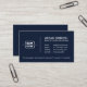 Cet élégant carte de visite professionnel bleu marine présente un monogramme personnalisé de deux ou trois lettres à l'intérieur d'un carré d'angle arrondi, représentant une marque professionnelle ou personnelle avec du texte personnalisé pour un slogan ou un slogan. À côté du monogramme bien positionné sur la droite, se trouve le nom, la désignation et les coordonnées du détenteur de la carte, y compris les poignées de courriel, de téléphone et de médias sociaux. L'envers montre le monogramme dans une plus grande taille, centré sur la carte, renforçant son élégance minimaliste. La disposition simple et sophistiquée incarne luxe et modernité.