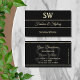 Carte De Visite Élégant Noir clair rayures dorées avec Monogramme
