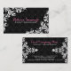 Elégante dentelle blanche florale tourbillonne sur le motif noir damas floral, modèle de carte de visite. Pour les concepteurs d'événements, wedding planners