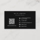 This modern elegant professional monogram business card features an upscale minimalist typography layout, with QR code and contact information on the back, including social media icons.