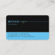 Professionnel Elegant carte de visite Bleu et Noir avec prénom en gras et Script nom de famille, carrière et détails complets en noir contre rectangle Bleu.