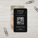Design élégant et simple pour carte boîtier avec code qr, calligraphie moderne et une photo sur le dos.