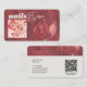 Faites une déclaration audacieuse avec cette carte de visite élégante, rétro et élégante, conçue pour les professionnels de l'ongle et du maquillage qui veulent se démarquer. Doté d'un motif abstrait rouge sophistiqué, cette carte dégage confiance, créativité et professionnalisme, parfait pour les salons de beauté, les techniciens de clous, les maquilleurs et les influenceurs de beauté. Un design motif abstrait rouge sophistiqué et unique qui feuille une impression durable. Que vous soyez en réseau, en réservant des clients ou en faisant la promotion de vos services, cette carte apporte style, professionnalisme et élégance à votre entreprise de beauté.