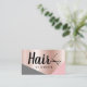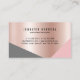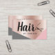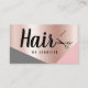 Carte de visite moderne pour coiffeurs ou coiffeurs avec ciseaux, faux or rose, rose & gris arrière - plan géométrique et police calligraphique élégante.