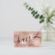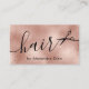 Ce design carte de visite de coiffure moderne présente une texture rose en cuivre, des ciseaux et une police calligraphique élégante.
