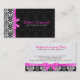 Carte De Visite Élégant ruban rose noir et blanc Damas 2a