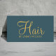 Modèle élégant entièrement personnalisable carte de visite. Parfait pour salon de coiffure, coiffeur. Conception avec arrière - plan vert, texte en gras jaune.