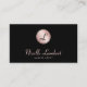Elégant carte de visite noir minimaliste avec un monogramme sur un cercle or rose et votre nom ensemble dans la typographie de script chic et intemporelle. Une façon parfaite de faire une impression durable. Idéal pour tout professionnel comme un maquilleur, propriétaire de salon de beauté, coiffeur, spécialiste de l'ongle, esthéticienne, esthéticienne, et plus encore. Vous pouvez personnaliser le front avec votre monogramme, nom et titre (ou adresse du site) et inclure votre nom, titre, numéro de téléphone, courriel, adresse du site Web, comptes de médias sociaux, un code QR scannable et le texte "se connecter avec nous" au dos.