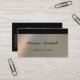 Easily customize this modern business card template with your name and contact details. Add your website and QR Code for a stylish calling card. This original faux brushed metal gradient background can be edited for your purposes. The classy black and bronze business card with clear, simple black script will create a good first impression. Add your name and title or business. On the back is a place for custom text where you can add your email, phone number, address and more. You could add a tagline if desired and the services offered. Check the final result to ensure you are satisfied with the spacing. I created this unique design with a classy faux golden silver gradient effect. It is not real gold foil but has a sophisticated look. This would be an eye catching professional business card for a spa, a wedding consultant, beauty consultant, jewelry designer, nail salon or designer.