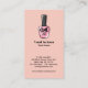 L'élégant Carte de visite à bouteille de couleur rose et noire à ongles polonais est décoré dans un style élégant avec un arrière - plan rose pâle et des accents noirs élégants, y compris un graphisme à la bouteille de vernis à ongles. Cette carte de visite moderne et chic représente parfaitement les salons à ongles ou les manicuristes, alliant élégance et touche féminine. Le design apporte du professionnalisme tout en ajoutant une touche créative, ce qui en fait un lieu idéal pour laisser une impression durable aux clients.