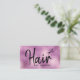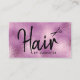 Ce design carte de visite de coiffure moderne présente des ciseaux, un arrière - plan de texture métallique imitation violet et une police de calligraphie élégante.