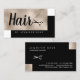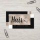 carte de visite moderne pour coiffeurs ou coiffeurs avec ciseaux, teinture couleur faux champagne et arrière - plan noir, police calligraphie élégante.