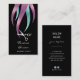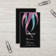 Belle coiffure design carte de visite avec cheveux de texture violet et bleu faux métallique, ciseaux, arrière - plan noir et élégante police calligraphie.