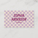 Faites une impression durable avec cette élégante crème et à damiers violet carte de visite. L'avant est doté d'un motif à damiers qui met en valeur votre nom et votre profession, tandis que l'arrière offre une mise en page propre pour vos coordonnées, votre site Web et vos liens vers les médias sociaux. Un code QR intégré assure des connexions numériques faciles, ce qui rend cette carte à la fois élégante et fonctionnelle. Idéal pour les professionnels, les créatifs et les entrepreneurs à la recherche d'un design moderne et accessible.