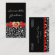 Motif empreinte de léopard noir blanc avec arc rouge et modèle de carte de visite bijou qui comprend un motif panthère noir, blanc, gris et un ruban rouge avec un arc et un bijou en forme de coeur également en rouge avec contour et strass en or qui ajoute un peu de bling. Notez que l'arc et le bijou de diamant du coeur sont une illustration "imprimée sur" et non un vrai cristal, ainsi le strass. Un design carte de visite féminin élégant et élégant. Tendance, tendance et moderne parfait pour un usage professionnel ou personnel.