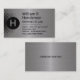 Carte de visite professionnel fait sur commande, avec des graphiques d'un regard en aluminium balayé. Les points noirs de gradient, sur l'avant gauche de la carte finit en grand cercle noir avec un monogramme simple gris de lettre. Personnalisez tous les gisements des textes pour vos besoins d'affaires.