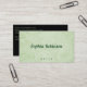 Un carte de visite simple et moderne avec un arrière - plan en cuir vert pâle sur le devant et l'espace pour votre nom, profession, poignée de médias sociaux, site Web, adresse postale et numéro de téléphone.