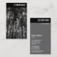 Modèle vertical de carte de visite avec en-tête noir avec une image à l'avant. Nom de l'entreprise dans l'en-tête à l'avant et à l'arrière avec Tous les autres coordonnées à l'arrière. La photo ou l'image sur le devant peut également être changée. La conception permet également une grande marge de manoeuvre pour une personnalisation supplémentaire.