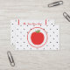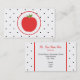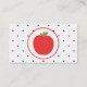 Un carte de visite pour les enseignants avec un arrière - plan de petits pois noirs devant et derrière blanc. Illustration de pomme rouge à l'intérieur d'un cercle blanc tracé en rouge. Personnalisez le texte du côté opposé.