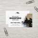 Ce carte de visite de réparation de toiture et de toiture dispose d'un ouvrier sur un toit. Parfait pour le toit, toiture, toiture, réparation de maison, remodelage de maison, construction, entrepreneur, thèmes de services.