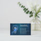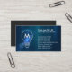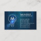 Le carte de visite de l'entrepreneur en électricité Monogram Electrician dispose d'une icône d'ampoule sur une texture métallique fausse bleue. Idéal pour l'électricité, l'électricité, l'entrepreneur, l'électricité, l'entrepreneur, l'homme à main, la réparation de maison, la réparation de maison.