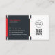 Mettez à niveau votre jeu de réseautage avec ce Carte de visite d'entreprise moderne Red Professional. Doté d'une mise en page sophistiquée, l'avant met en évidence votre nom, votre titre, vos coordonnées et un code QR scannable, tandis que l'arrière offre de l'espace pour votre logo et votre site Web. Des lignes épurées et un code couleur rouge foncé assurent un aspect poli et professionnel, parfait pour les professionnels d'entreprise.