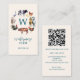 Carte de visite de ferme avec aquarelle animaux de ferme : chevaux, vaches, dinde, poulet, rouster, agneau, canard avec texte personnalisé. Conception recto verso avec code QR.