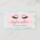 De magnifiques extensions carte de visite d'oculaires avec une texture colorée de faux holographes, un bloc de couleur rose et une police de calligraphie élégante.