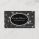 La fausse pierre chic et à la mode a clouté le cadre pour placer votre nom et titre avec un arrière - plan scintillant d'étoile noire. C'est un modèle de carte de visite qui lui fait facile superbe à personnaliser avec votre propre information. Cette carte serait appropriée pour un consultant en matière de coiffeur (Cosmetologist), de maquilleur, de mode, le représentant d'approvisionnement de beauté, le manucure, le bijoutier, ou n'importe quelle autre carrière qui doit faire avec la beauté, la mode ou les bijoux.
