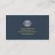 Au-dessus, dans une couche bleu foncé, le logo globe est en haut, suivi du nom commercial, des coordonnées et d'une légende de slogan pour faire connaître vos services. Toutes les lettres ici sont en faux or.