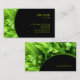 Carte de visite générique avec feuilles verts frais sur arrière - plan noir. Convient pour les activités de l'environnement, l'agriculture, les entreprises vertes, les produits naturels ou cosmétiques etc. Entièrement personnalisable, ajoutez vos propres informations et choisissez forme et format.