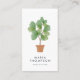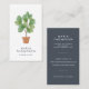 Les élégants cartes de visite verticaux pour les gardiens de maison, les agents immobiliers, les agents immobiliers, les agents immobiliers, les décorateurs ou les escaliers d'habitation présentent une illustration de la plante domestique en feuilles de violon à l'aquarelle avec votre nom ou nom d'entreprise en dessous. Ajoutez vos coordonnées complètes au verso en blanc sur un arrière - plan bleu fumée contrastant.