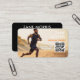 Promote your fitness brand with this fitness trainer photo QR code business card. The clean, modern layout allows you to showcase your photo while the integrated QR code makes it easy for clients to access training programs, booking links, or social media. Designed for personal trainers and fitness coaches who want a professional, print-ready business card that supports both in-person networking and digital connection.