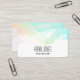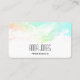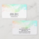 Un carte de visite avec une bordure abstraite le long du dessus avec des couleurs tourbillonnant vertes et bleues. Un design doux et estival. Une texture de papier aquarelle claire derrière l'image.