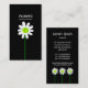 Un carte de visite attrayant avec un motif floral simple dessiné à la main. Nom de l'entreprise et type d'entreprise sur le devant avec nom et autres coordonnées sur le dos avec un motif à trois fleurs.