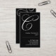 La lettre "C" rendue dans un manuscrit fleuri domine ce carte de visite noir saisissant faisant un élégant, souple recherchent un coiffeur, un consultant en matière d'image, un entraîneur de la vie, ou un styliste parmi beaucoup d'autres. N'aiment pas l'arrière - plan noir ? Choisissez la "personnaliser il" option de bouton et changez la couleur d'arrière - plan comme désirée. Disponible dans les monogrammes alternatifs.