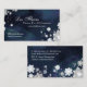 Fleurs en faux tissu blanc et tourbillons élégants + arrière - plan texturé rustique dans les tons bleu marine illustrée sur le commerce personnalisé | Cartes de profil. Cartes florales uniques et fantaisistes que vous pouvez facilement personnaliser pour votre entreprise de FLEURS ou de BIJOUX FAITS À LA MAIN! N'hésitez pas à modifier les couleurs, les tailles et les polices du texte. (Contactez ujean4791@gmail.com pour effectuer un travail personnalisé et/ou faire correspondre des éléments.))