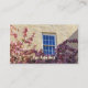 Customisez ce carte de visite, de grand potelé à de petites tailles de profil disponibles. Choisissez votre style de papier. Photographie par la fleur de Minerva. Fleurs de cerisier encadrant une fenêtre blanche de style français d'une maison d'adobe.