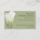 Ce carte de visite affiche une belle photo de Calla Lilies. La carte frontale offre un espace suffisant pour votre nom d'entreprise et votre ligne de balise. L'arrière offre de l'espace pour les informations de contact et affiche une section plus petite des lis. L'exemple utilisé pour la carte est celui d'un magasin de fleurs, mais il pourrait être utilisé pour des planificateurs nuptiaux ou des propriétaires de boutique. Photo et design ©Vann-Horn Photo et design créatifs.