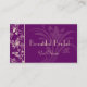 Cette conception de carte de visite est sûre d'attirer l'attention et de vous aider à se tenir dans la foule. L'arrière - plan est prune pourpre et il y a un beau graphique floral en crème lui donnant un regard élégant. Perfectionnez pour n'importe quelles affaires mais particulièrement grand pour le salon nuptiale, en épousant la planification, planification d'événement, restauration, salon de clou, spa, des bijoux, cosmetologist, mode, consultant en matière de beauté, ou quand vous voudriez un contact élégant. Ajoutez votre information et il est prêt d'aller !