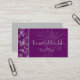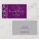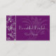 Cette conception de carte de visite est sûre d'attirer l'attention et de vous aider à se tenir dans la foule. L'arrière - plan est pourpre et il y a un beau graphique floral en argent lui donnant un regard élégant. Perfectionnez pour n'importe quelles affaires mais particulièrement grand pour le salon nuptiale, en épousant la planification, planification d'événement, restauration, salon de clou, spa, des bijoux, cosmetologist, mode, consultant en matière de beauté, ou quand vous voudriez un contact élégant. Ajoutez votre information et il est prêt d'aller !