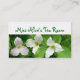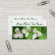Carte de visite avec photo de trois fleurs blanches de Trillium. La carte est personnalisable (le texte affiché est un exemple seulement). Serait approprié pour les salons de thé, bed and breakfasts, fleuristes, jardiniers, etc.