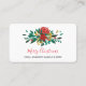 Un joli carte de visite de Noël avec un joli bouquet fleuri aux couleurs rouge, or et vert.
