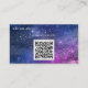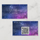 Ce carte de visite est orné d'un violet, arrière - plan de galaxie artistique, police élégante avec des swashes. De l'autre côté, il y a un code QR à remplacer par votre code. De taille standard, carte de visite girly pour votre auto-promotion tendance, style d'âge de l'espace.