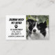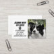 Une carte de visite vibrante et jolie pour les gardes d'animaux ou les promeneurs de chiens, etc. Avec une belle photo d'un border collie pour aider à se démarquer et être mémorisé par tous les amoureux des chiens à qui cette carte est transmise. Donnez à votre entreprise une image vraiment professionnelle et gagnez la confiance avec un design de carte élégant. © Image de collie exclusive à Zazzle.