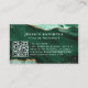 Carte de visite professionnel moderne et élégant avec code QR avec géode agate vert, marbre et or accents de parties scintillant personnalisée avec des initiales monogrammes de script de calligraphie tendance. MODIFICATIONS : Modifiez le style, la couleur, la taille et le placement de la police de texte en cliquant sur MODIFIER dans la section PERSONNALISER. ASSISTANCE : Pour obtenir de l'aide sur la modification ou la personnalisation de la conception, le changement de couleur, le transfert de la conception vers un autre produit ou pour coordonner des éléments, contactez le concepteur AVANT DE COMMANDER via l'onglet MESSAGE Conversation Zazzle ou envoyez un courriel à makeitaboutyoustore@gmail.com.
