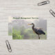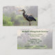 Ce carte de visite fait de la publicité pour une société de gestion des zones humides. Il présente une scène de paix et de sérénité ... un grand héron bleu charmant sur un matin d'été avec du brouillard et de la brume se levant derrière lui. Ciel lointain, arbres pâles et feuillage vert se reflètent dans l'eau. L'image est répétée à l'arrière. Tout le texte peut être customisé en fonction de votre situation.