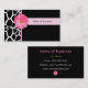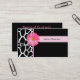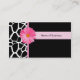 Écartez le mot au sujet de vos affaires nouvelles impressionnantes avec ces cartes de visite noirs et blancs mignons et à la mode d'impression de motif de girafe avec une fleur rose girly de marguerite.