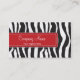 Ces cartes de visite professionnels et à la mode sont parfaits pour vos affaires ! Ils comportent un arrière - plan sauvage noir et blanc de rayures de zèbre. Sur l'arrière - plan est une barre rouge avec la pièce pour votre raison sociale, tagline, votre nom, fonction et détails de contact. Conception très mignonne pour des salons de coiffure, un coiffeur, des boutiques, les dessinateurs d'intérieurs, les maquilleurs, la mode et beaucoup plus !